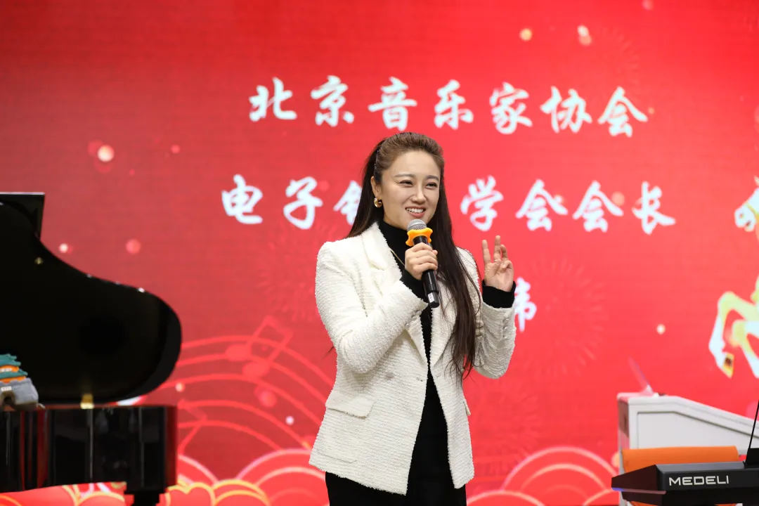 联谊会由中国音协电子键盘学会副会长兼秘书长付培培与北京音协电子键盘学会秘书长刘晨共同主持。芦小鸥会长与王小玮会长分别代表中国音协电子键盘学会和北京音协电子键盘学会,向现场北京会员及在线观看的全国电子键盘界同仁表达节日祝贺与新年祝愿,祝全国电子键盘工作者在新的一年里,身体健康,工作顺利,阖家欢乐,万事顺意。