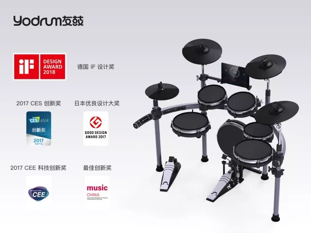 美得理-友鼓yodrum上市后,2017年,喜获“CES”、“CEE”、“最佳创新奖”、“G-Mark日本优良设计奖”四项大奖,2018年1月美得理-友鼓yodrum开门大吉,收获最具份量的奥斯卡奖项—德国iF设计大奖,从此和奔驰、宝马、IBM、苹果、华硕、索尼、三星等国际巨头一起跻身iF大奖得主的荣耀殿堂!